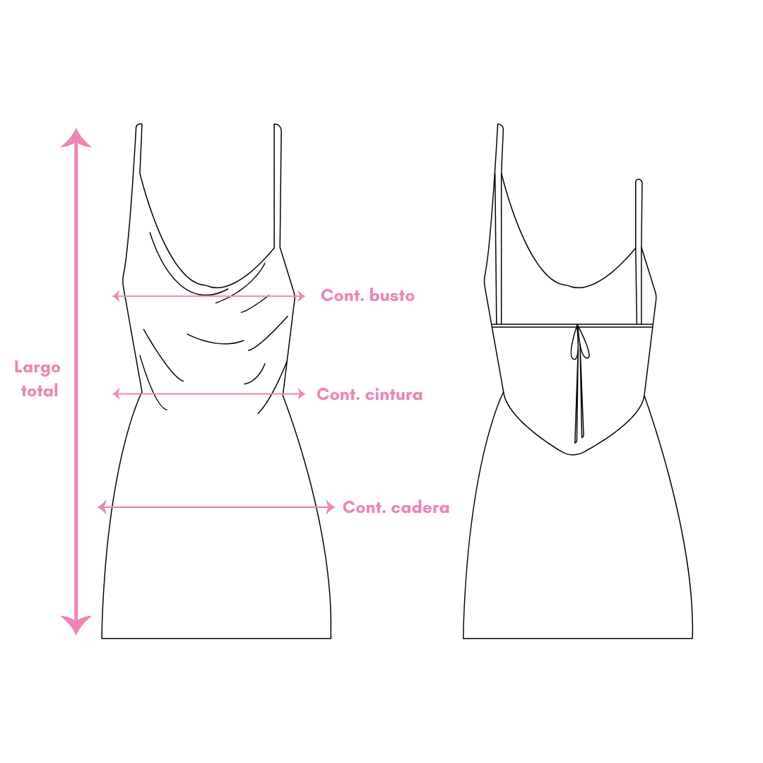 Contorno busto: 90 - 95 cm (al tener espalda descubierta y lazos regulables cede más)