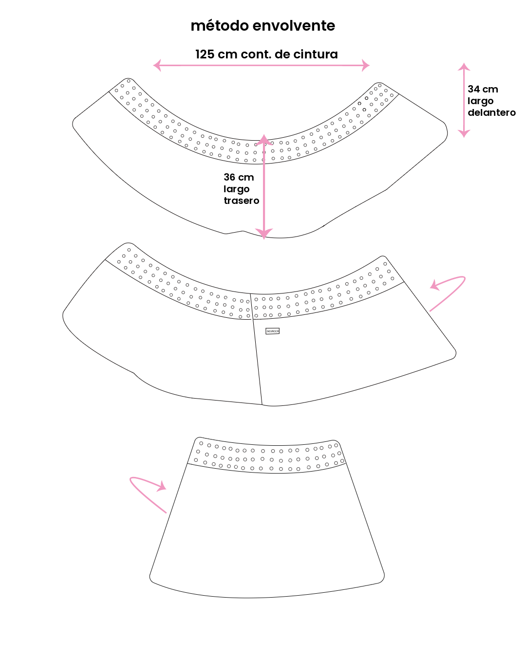 Contorno de cintura: 125 cm (midiendo la pollera abierta, sin envolver)